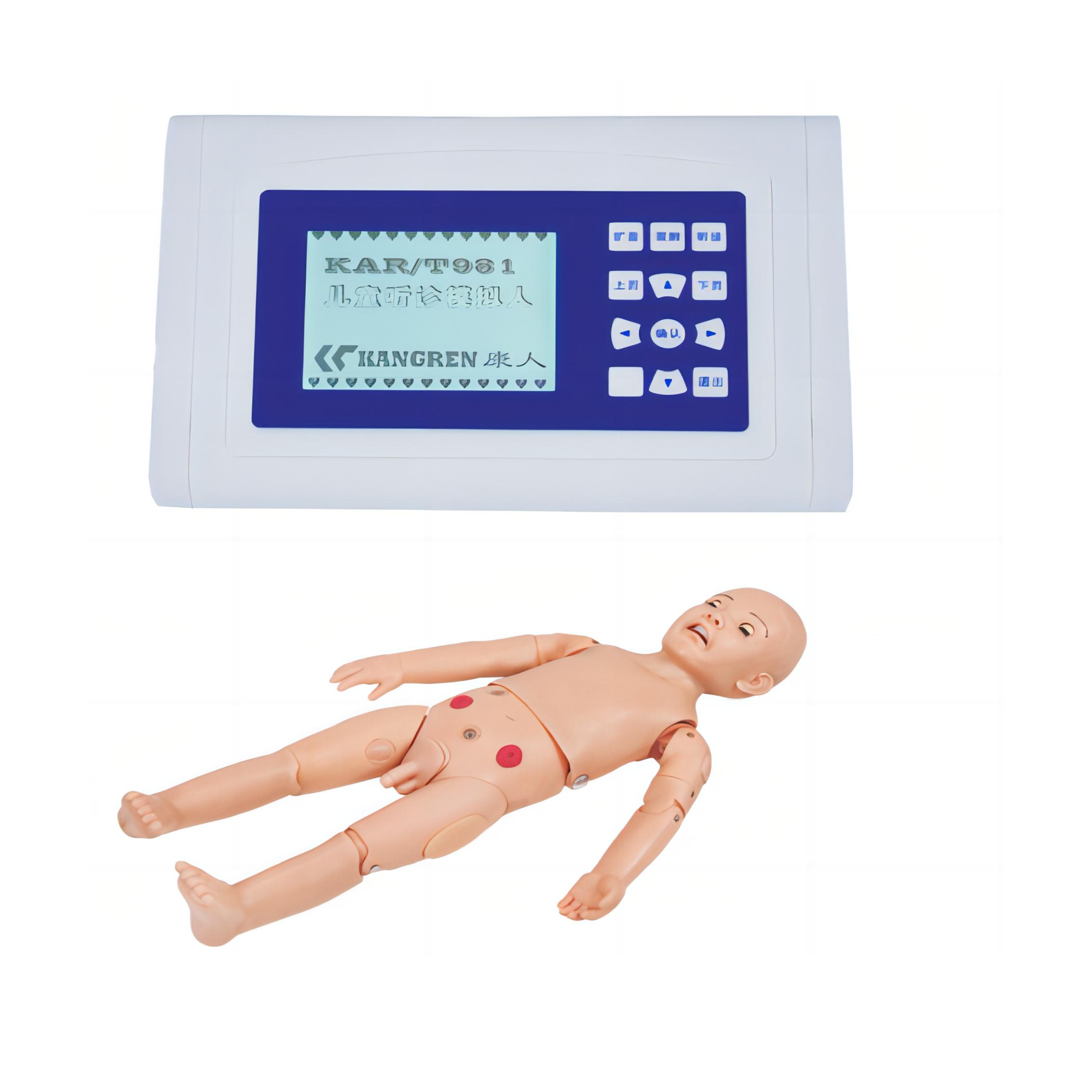 該產(chǎn)品包括兒童模擬人、聽診控制盒、遙控器,模型由塑膠制成,皮膚仿真,具有兒童心肺聽診和基礎(chǔ)護理功能。該產(chǎn)品皮膚柔軟有彈性,不易變形,解剖結(jié)構(gòu)清晰,可進行兒童聽診和基礎(chǔ)護理操作訓練,以及心肺復(fù)蘇(CPR
