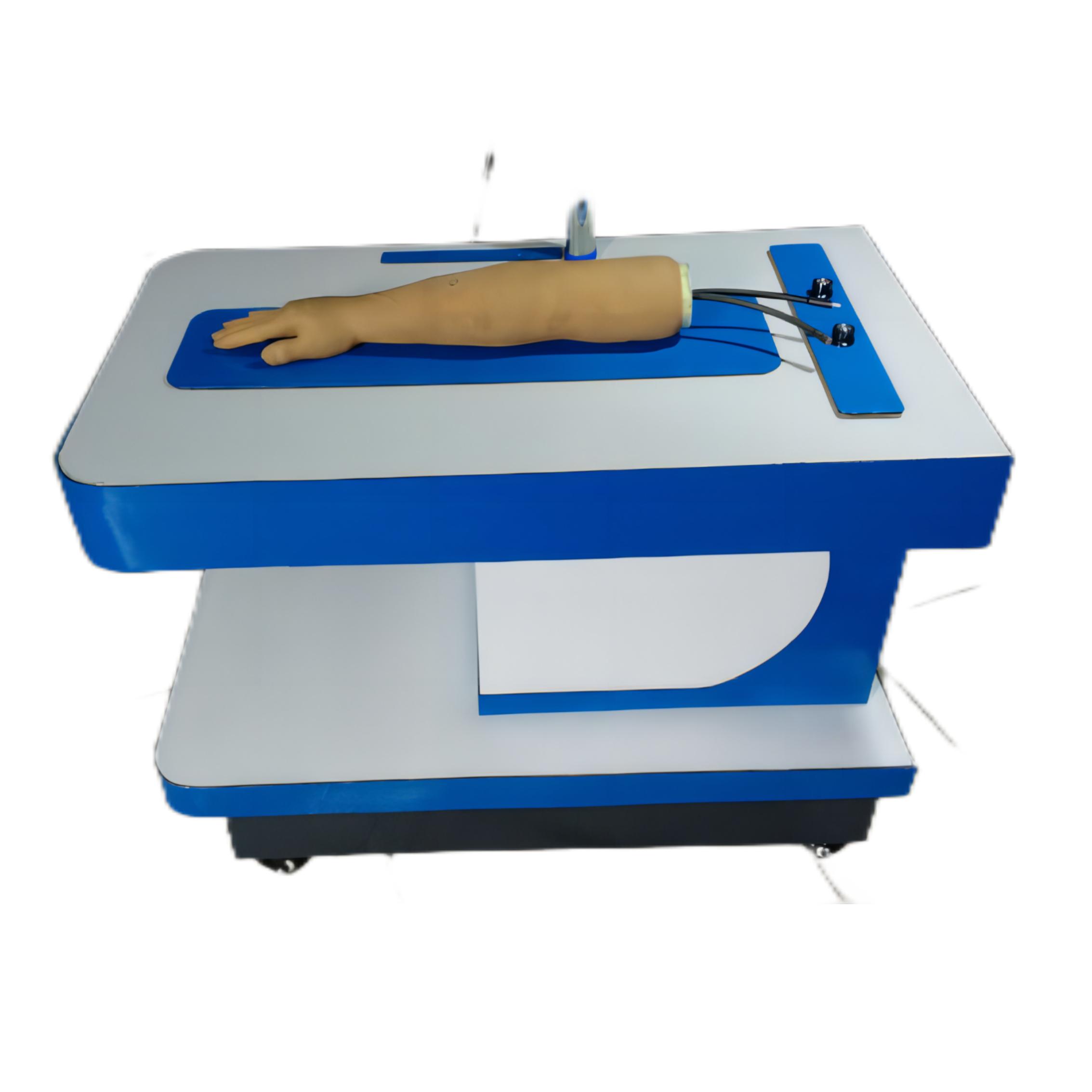 5、微電腦測評統(tǒng)計系統(tǒng):主控臺內(nèi)通過電腦芯片進行分析,準確判斷操作練習者穿刺后,液體是否進入靜脈血管或皮下組織,并以語音方式給予提示。
