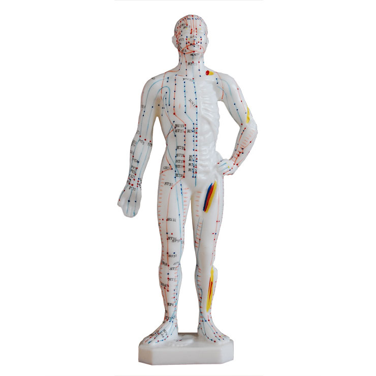 這款小型針灸模型顯示了14條經(jīng)絡(luò)線和72個(gè)用漢字或數(shù)字標(biāo)明的穴位。適合初級(jí)針灸治療課程使用。用軟PVC制成,尺寸:26CM高。