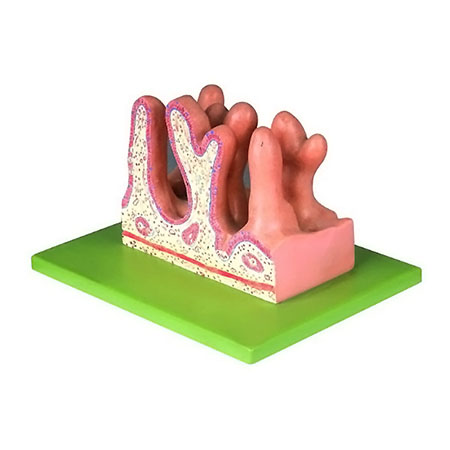 博友BM1086空腸內(nèi)面放大模型顯示空腸內(nèi)面粘膜表面許多絨毛結構,絨毛由粘膜上皮和固有層向腸腔突起而成,共有13個部位指示標志。