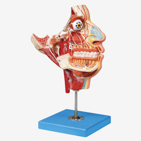 博友BM18109頭面部血管神經(jīng)模型顯示頭面部?jī)?nèi)、外側(cè)面局部形態(tài)及其血管和神經(jīng)等結(jié)構(gòu),共有100個(gè)部位指示。