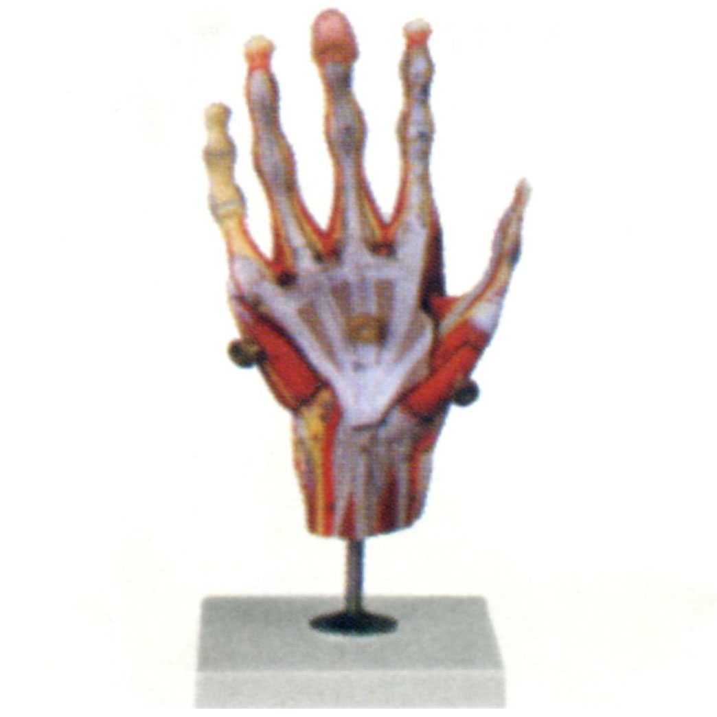 博友BM1302手肌附主要血管神經(jīng)模型由手肌、掌腱膜、魚際、小魚際和蚓狀肌等5個部件組成,并顯示手肌分層、手骨、韌帶、肌腱及其主要血管神經(jīng)等結構。 尺寸:自然大,22.5×13.5×5.5cm