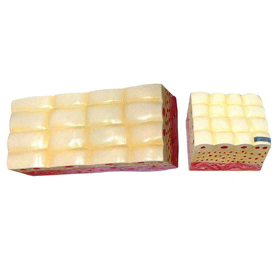博友BM2035變移上皮組織模型示膀胱空虛時(shí)與充盈時(shí)各細(xì)胞頂面與側(cè)面的形態(tài),共有2部件。 尺寸:23×24×7cm