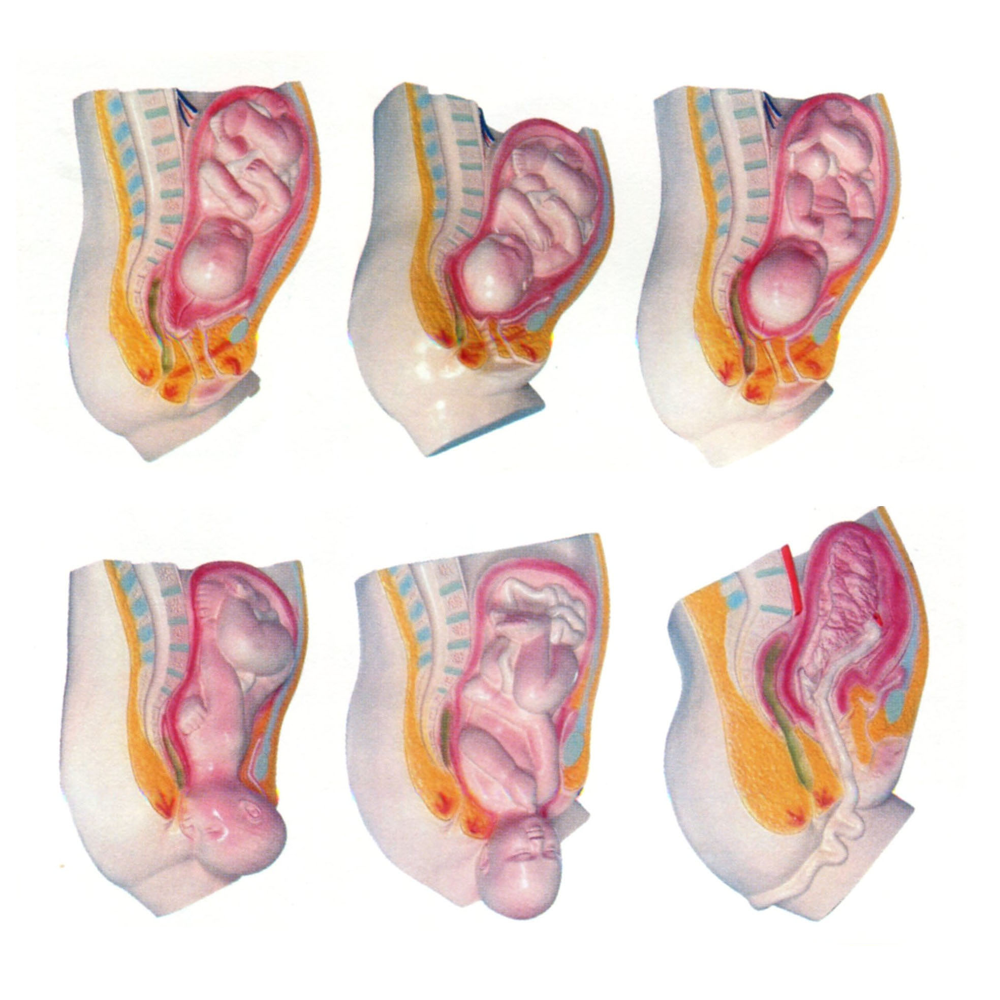 博友BM2081足月胎兒分娩過程模型由六件模型組成,分別演示: 1、演示胎兒胎頭尚浮銜接 2、演示胎兒銜接俯屈下降 3、演示胎兒繼續(xù)下降與內(nèi)旋轉(zhuǎn) 4、演示胎兒內(nèi)旋轉(zhuǎn)完成開始仰伸 5、演示胎兒胎頭外旋轉(zhuǎn),頭先娩出 6、演示胎兒從母體娩出后,留余母體內(nèi)的胎盤及部分臍帶。