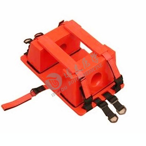 有高密度的塑料材料制成,頭部兩側(cè)設(shè)有兩個圓形耳洞,用來觀察出血或引流。整體材料無金屬成份,無需脫掉頭部固定器即可進(jìn)行X光透視,CT掃描,核磁共振。成像檢查。具有防水﹑易清潔﹑防病毒感染等功能??膳溆诩顾璋搴顽P式擔(dān)架使用。