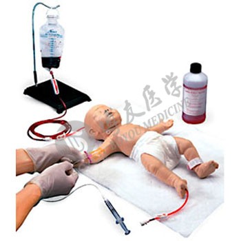 1、該女?huà)虢馄示_,體重4磅,身高16英寸,用于教授和練習(xí)新生兒靜脈穿刺,中心導(dǎo)管、PICC線和臍管的護(hù)理