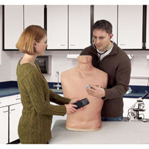 該模型是聽診訓(xùn)練的!是培養(yǎng)聽診技巧和考核!老師從聽診遙控器上選擇某一異常心音或肺呼吸音讓學(xué)生判斷,學(xué)生必須在模型人正確的聽診位置聽診,并做出診斷,從而達(dá)到學(xué)習(xí)、考核聽診技巧的目的。