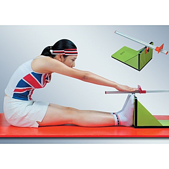 測定方法:受測者坐在連接于箱體的軟墊上,兩腿伸直,不可彎曲,腳跟并攏,腳尖分開約10-15cm,踩在測量計(jì)垂直板上,可視被試者腳的大小,用緊固螺絲調(diào)整尺寸的高度,然后兩手并攏,兩臂和手伸直,漸漸使上體前屈,用兩手指尖輕輕推動(dòng)尺上的游標(biāo)前滑,直到不能繼續(xù)前伸。測兩次,取最好成績,記錄以cm為單位,精確到小數(shù)點(diǎn)后一位。