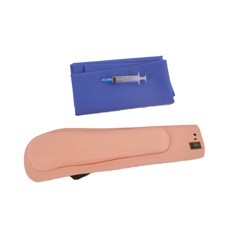 高級(jí)電子上臂肌肉注射訓(xùn)練模型特色鮮明。它可穿戴于學(xué)員肩膀,方便兩名學(xué)生分組練習(xí)。模擬成人肩膀上肢,精巧輕便,貼近真實(shí)場(chǎng)景,皮膚質(zhì)感逼真,進(jìn)針無痕。模型解剖精準(zhǔn),注射位置或深度有誤時(shí),紅燈閃爍并伴有電子報(bào)警。還能注入模擬液體排出,配備注射器、防水塵布?jí)|、鋁箱等附件助力教學(xué)。