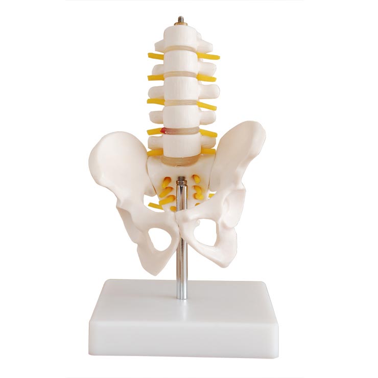 本小型骨盆帶五節(jié)腰椎模型由髖骨、骶骨、尾骨及5節(jié)腰椎組成,有底座。