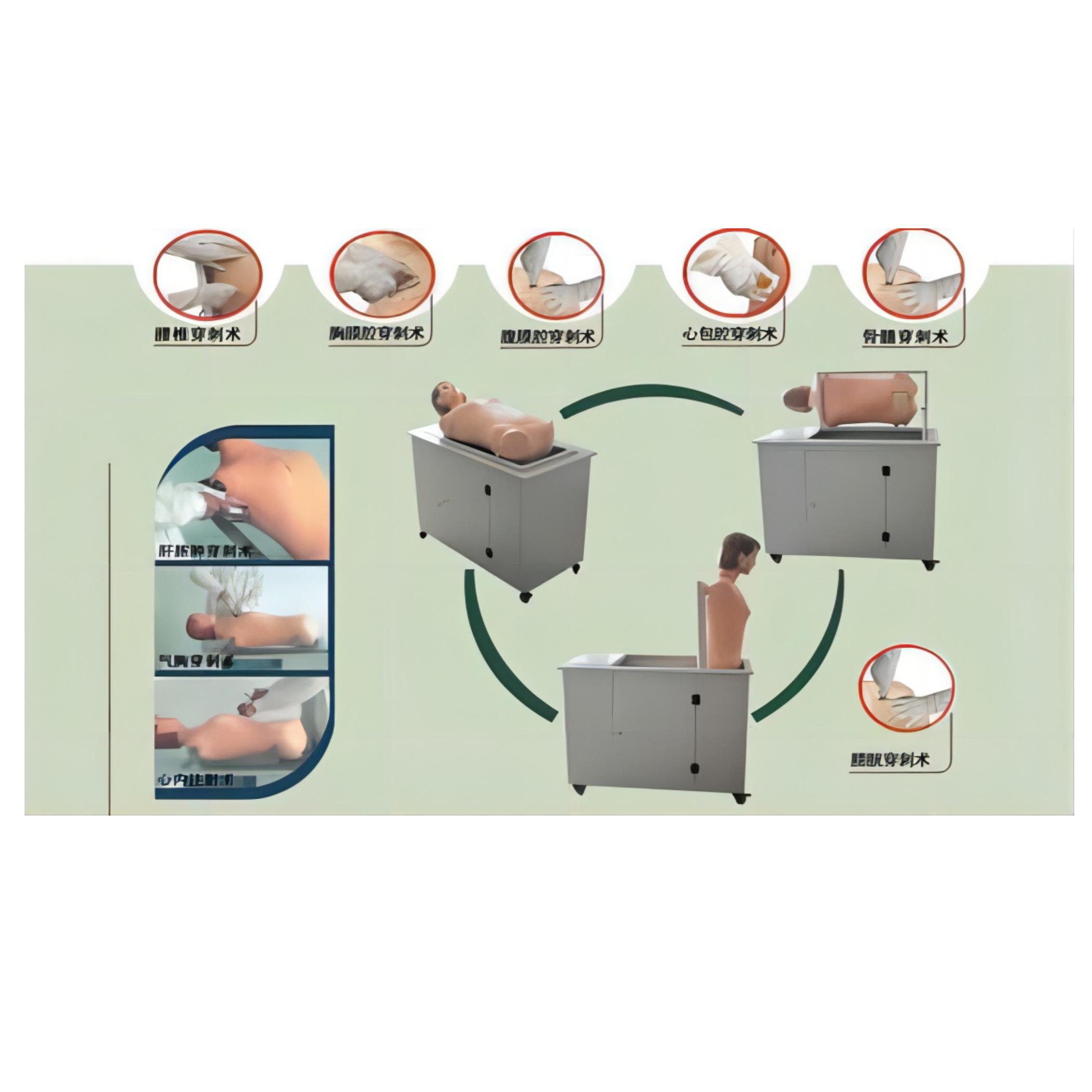 本產(chǎn)品用于完成診斷學(xué)教學(xué)大綱和執(zhí)業(yè)醫(yī)師技能考核大綱規(guī)定的重點(diǎn)掌握內(nèi)容:、胸腔穿刺術(shù)、腹腔穿刺術(shù)、腰椎穿刺術(shù)、心包穿刺術(shù)、骨髓穿刺術(shù)、氣胸穿刺術(shù)、肝膿腫穿刺抽膿術(shù)、心內(nèi)注射術(shù)、膀胱穿刺術(shù)、叩診技能訓(xùn)練、術(shù)前無(wú)菌術(shù)訓(xùn)練等項(xiàng)內(nèi)容。