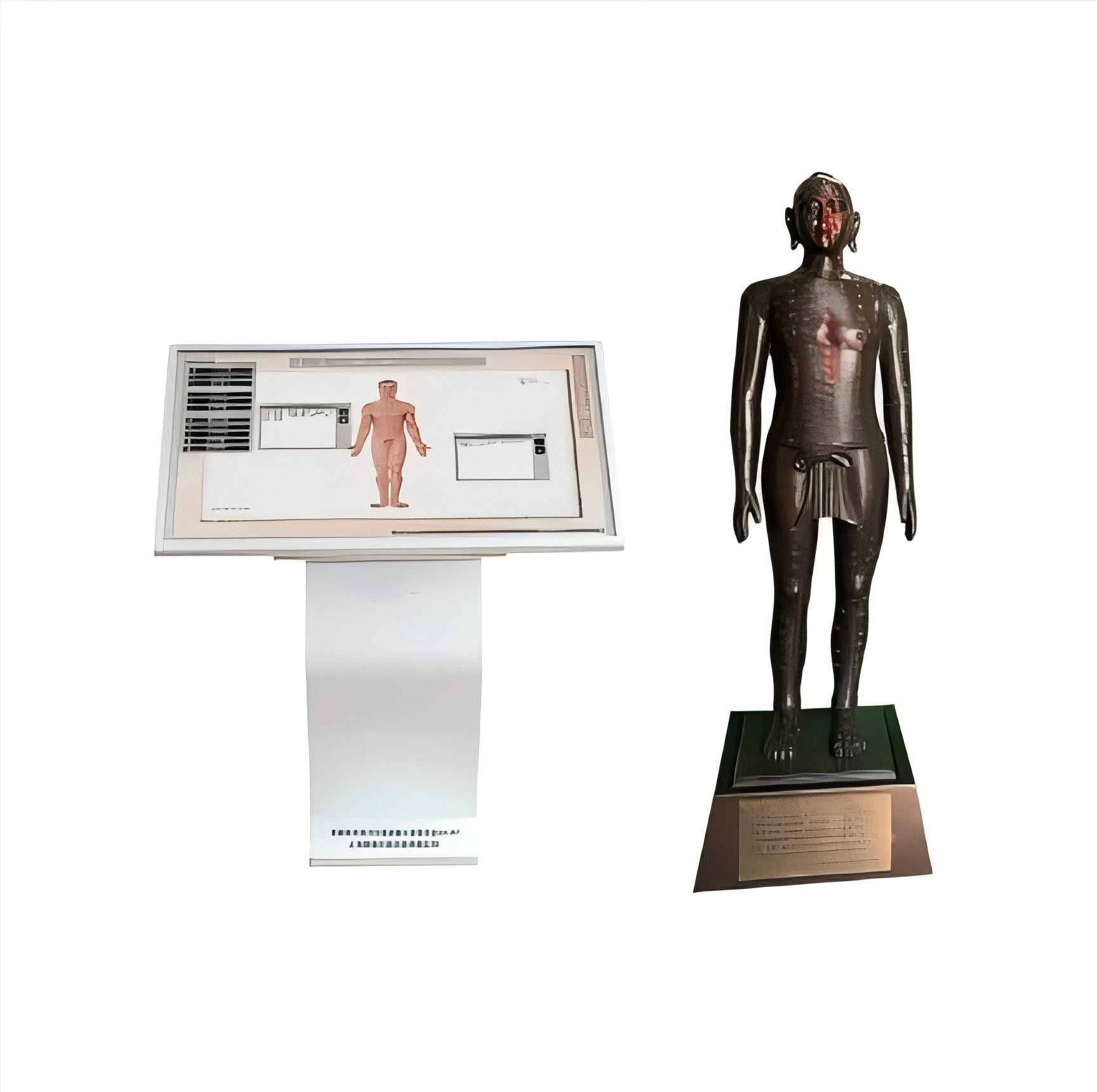 系統(tǒng)包含:落地式觸摸屏電腦帶軟件,人體針灸穴位發(fā)光銅人模型。相連之后,可交互使用。