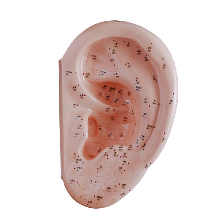 本模型用PVC制成,標出了相對應(yīng)的人體內(nèi)臟和軀干在耳廓上的針穴位置。附穴位使用手冊。