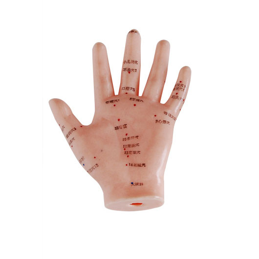 用軟而光亮的PVC制成的大規(guī)格的人手模型,顯示手背上的20個(gè)穴位和手心上13個(gè)穴位,穴位用漢字或數(shù)字標(biāo)注。附中英文使用手冊(cè)。 包裝:100件/箱,58x37x29cm,10 kgs