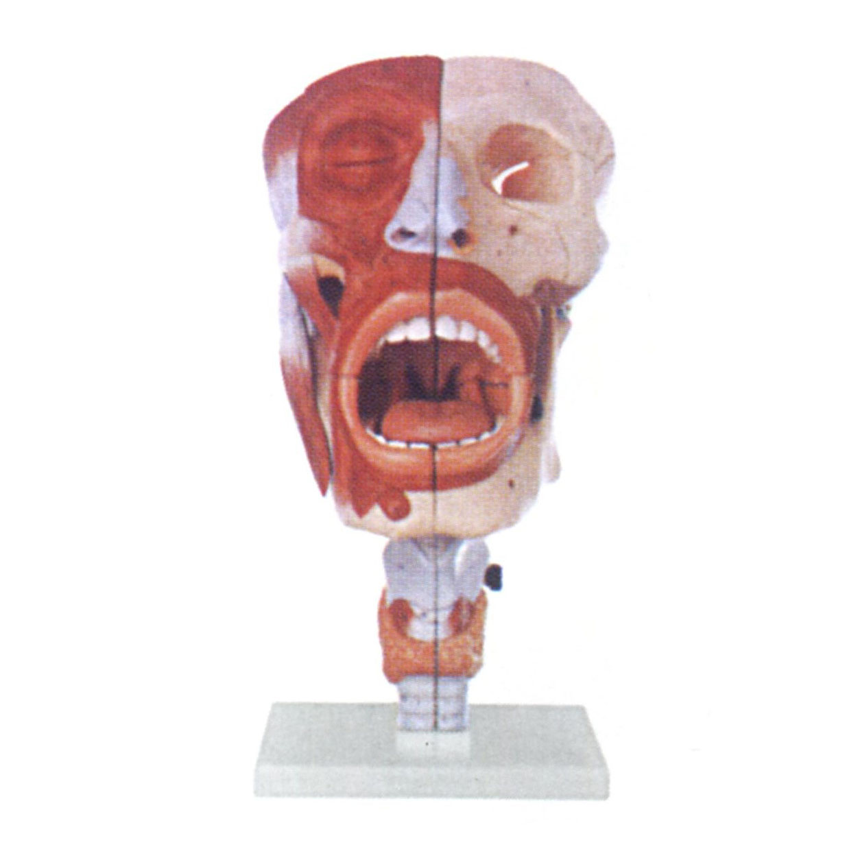博友 BM1119鼻、口、咽、喉腔模型由頭頸部、喉腔正中矢狀切面左、右側半,上、下兩部分,以及游離的舌和咬肌、咽縮肌等10個部件組成,并顯示顱骨、鼻、口、咽、喉腔正中矢狀切面、鼻中隔、面肌、咽肌、游離舌等結構。