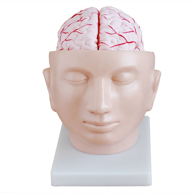 博友BOU-XC318頭部附腦和動脈模型這款模型顯示顱內的腦結構,顱基之上頭部可平行打開。腦模型可中分以顯示腦動脈和可拆卸腦底動脈。兩半都可分解為: 前頂葉、顳枕葉、腦干、小腦置于基架上。