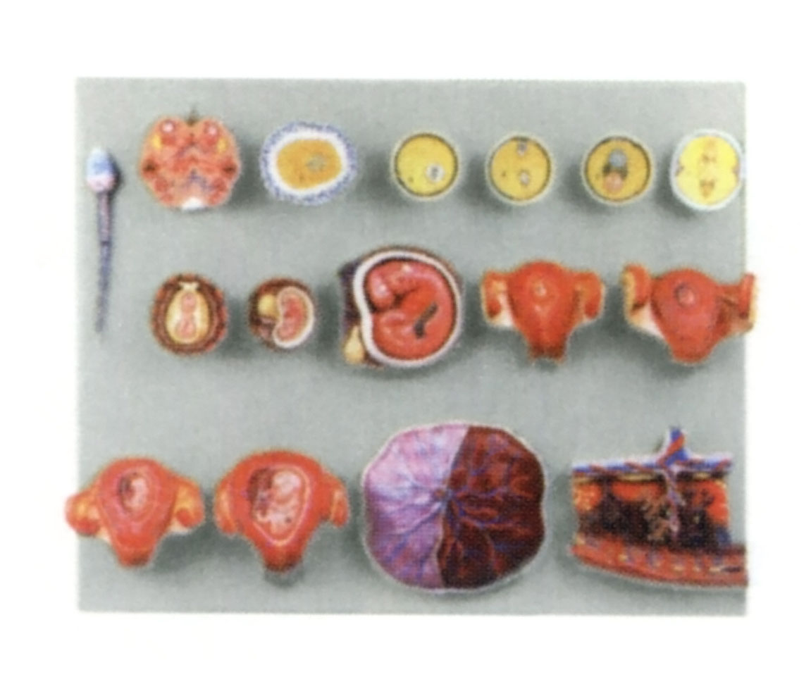 博友BM2072受精與早期胚胎發(fā)育過程模型由精子、卵巢、卵子、受精卵發(fā)育過程、胚盤、2-9周胚胎以及3月胎兒、胎盤等16個部件組成,并顯示從卵細(xì)胞發(fā)育到3月大小胎兒形成的人類早期胚胎發(fā)育過程等結(jié)構(gòu),共有16個部位指示。