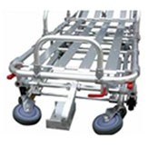 采用高質(zhì)鋁合金材料,配接件鋁合金壓鑄。采用海綿軟墊,使傷病員躺臥舒適。折腿機械結(jié)構(gòu),通過左右手柄控制。僅需一名救護人員把病人推上救護車。