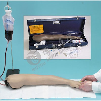 Includes a Life\/form® Arm with white skin, blood donor set, infusion set, 3 cc syringe, 12 cc syringe, needle, 1 pint Life\/form® Blood, teaching guide, and hard carrying case.
